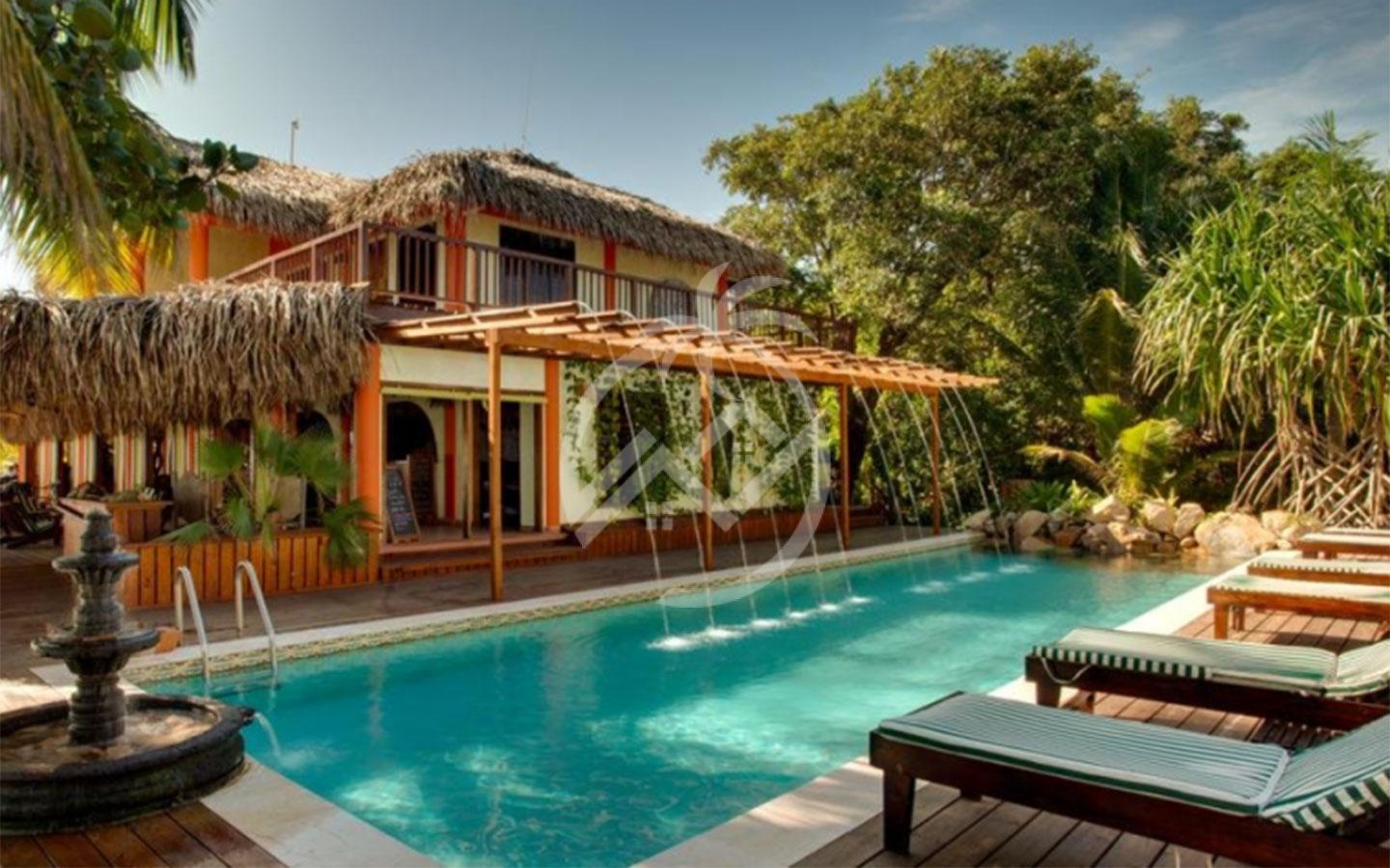 This nicely decorated unit offers a 3rd floor penthouse unit that faces the ocean, 2nd floor Master bedroom suite with kitchen and large veranda faces the ocean over looking the swimming pool, and an additional 2nd floor bedroom unit faces the garden. Property is located within Robert’s Grove a 22 acre white sand beach resort in Placencia, Belize. The resort offers two restaurants, swimming pools, breakfast / lunch / dinner and other amenities.