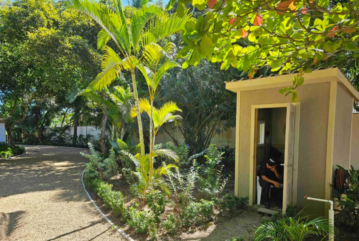 The massive 7,000-gallon subterranean water cistern on Placencia Beach Estate ensures a steady supply of pure water. The estate is built for maximum self-sufficiency. The presence of electronic gates and a security guard booth adds an air of professionalism and safety.