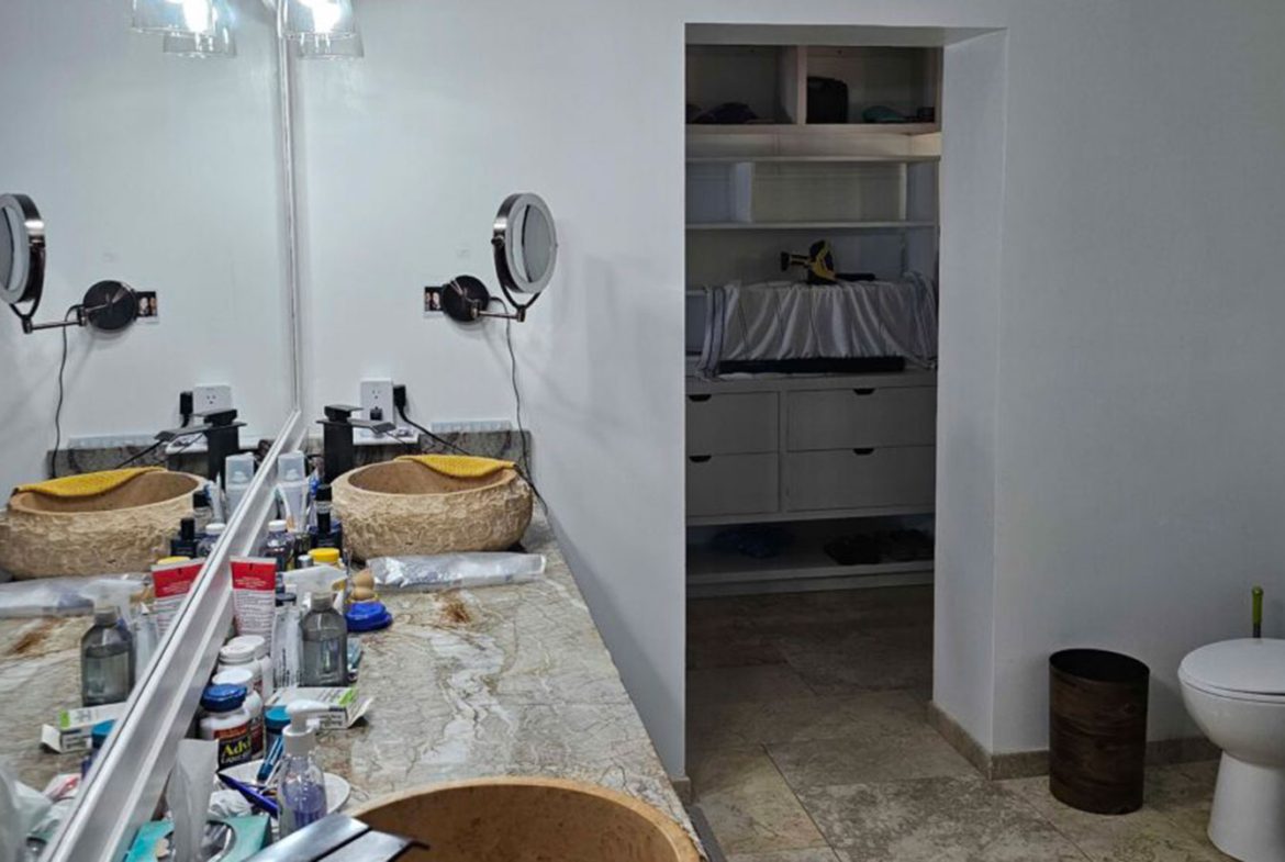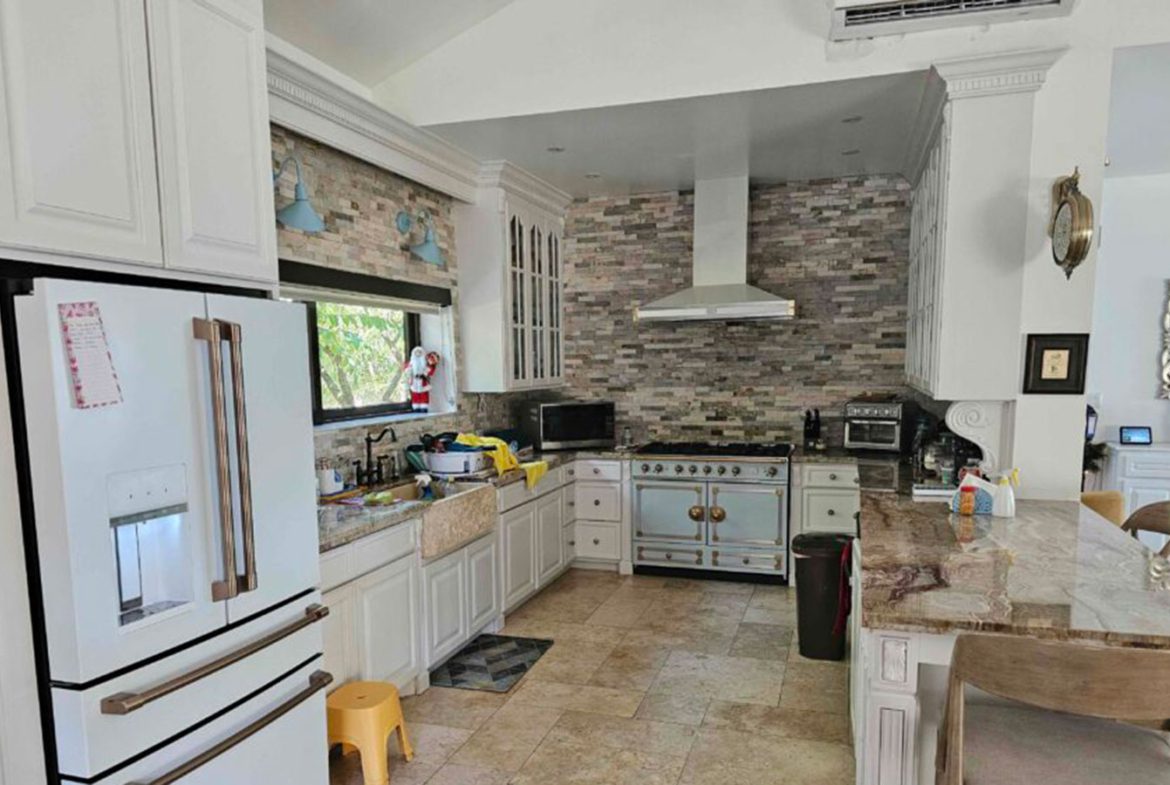 Enter to find the ultimate in luxury, with imported Jerusalem Gold Stone floors that shine brightly in every direction and a finely designed kitchen of stone and marble. A four-car garage on the property ensures privacy and convenience for its occupants. Ample space for adding rooms to the current main building or adding a two-bedroom guest apartment with a terrace and unhindered views of the Caribbean Sea above the four-car garage.