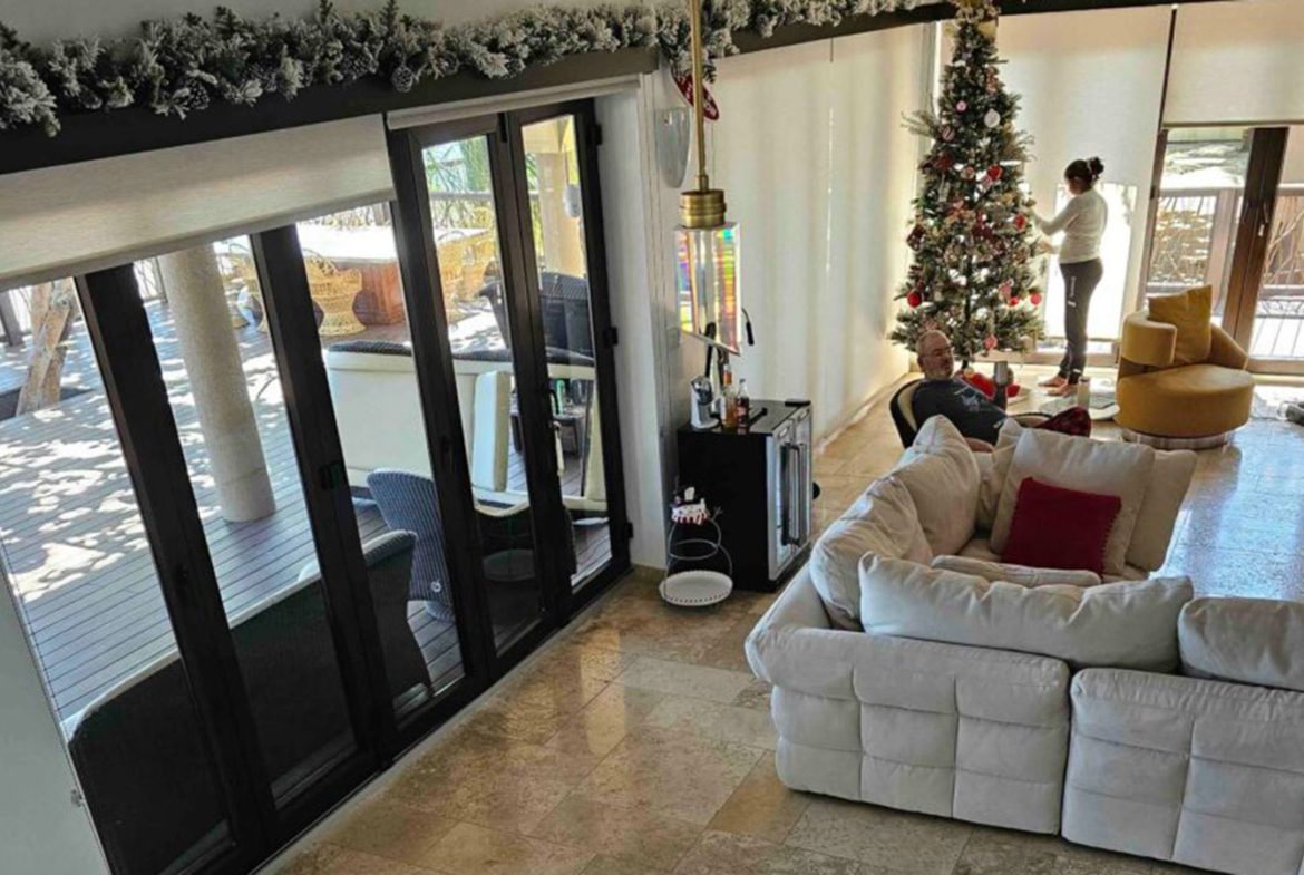 Enclosed by an impressive 13-foot concrete wall, the estate offers unparalleled seclusion and safety. The centerpiece of this lavish home is a sprawling 3,250 square foot, two-story main house with two bedrooms and 2.5 bathrooms. A massive 5,000 square foot deck on the first level effortlessly blends interior and outdoor living areas to create a space that seems like a tropical paradise.
