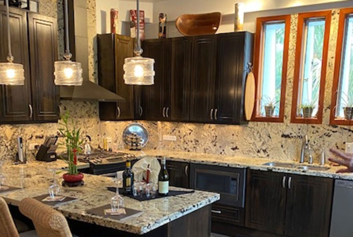 Roof top Palapa is bay leaf and covers approximately 940-960 sq feet with outdoor kitchen and 360 degree view; best roof top view in the village. Beautiful views of the Sea, Lagoon and Maya Mountains.